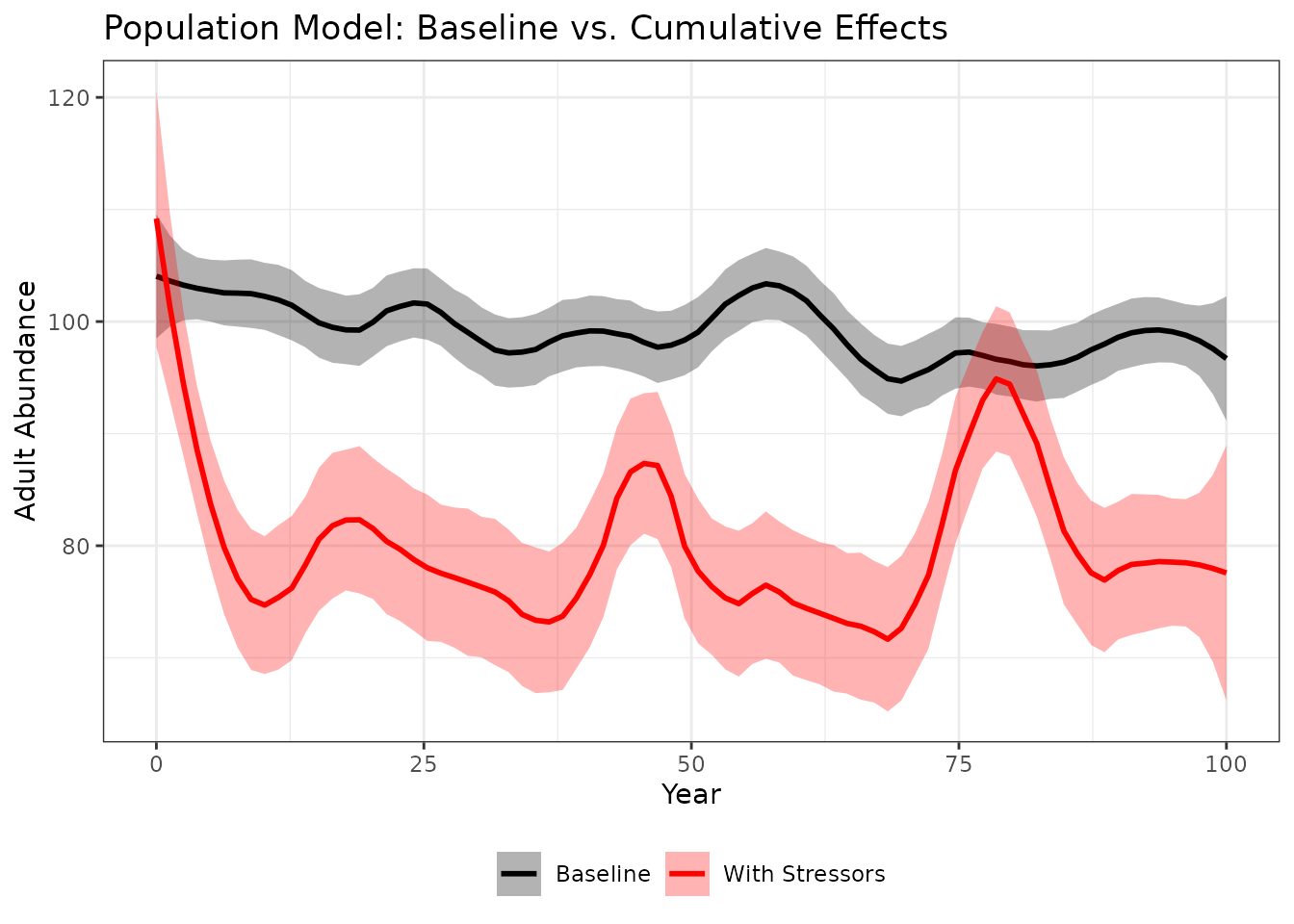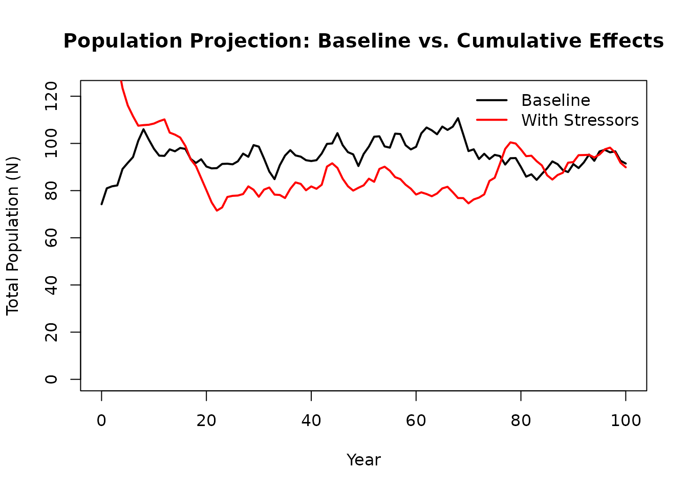 title = "Population Model: Baseline vs. Cumulative Effects") +